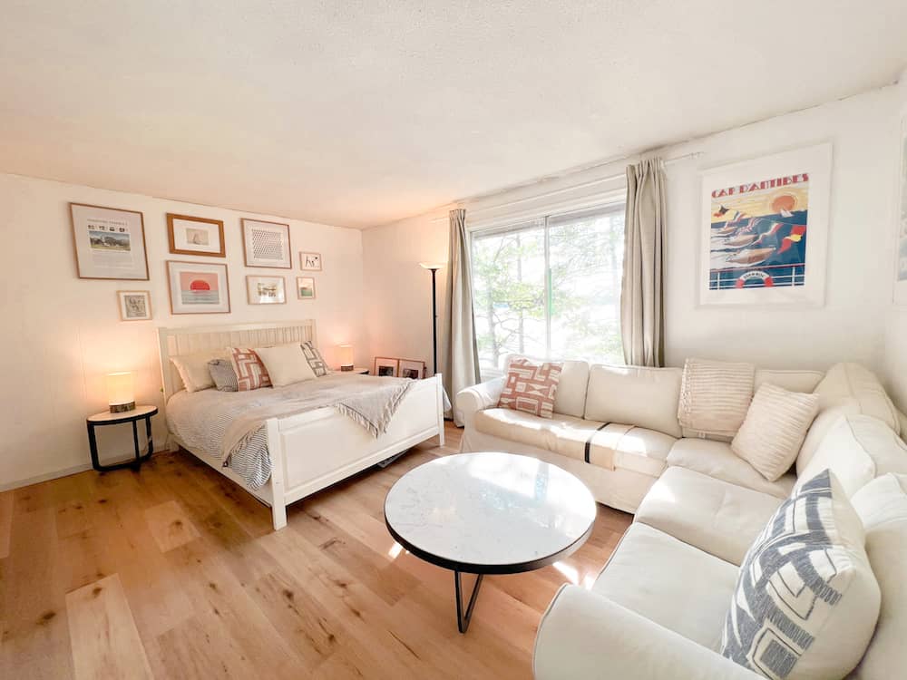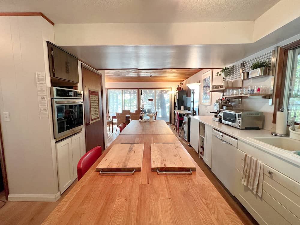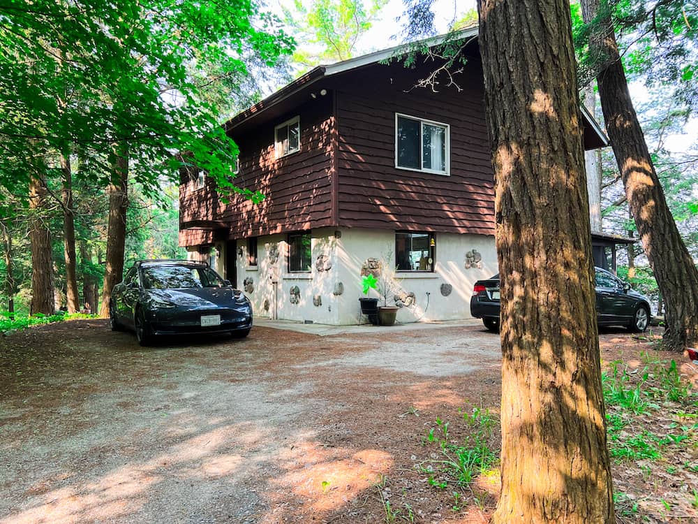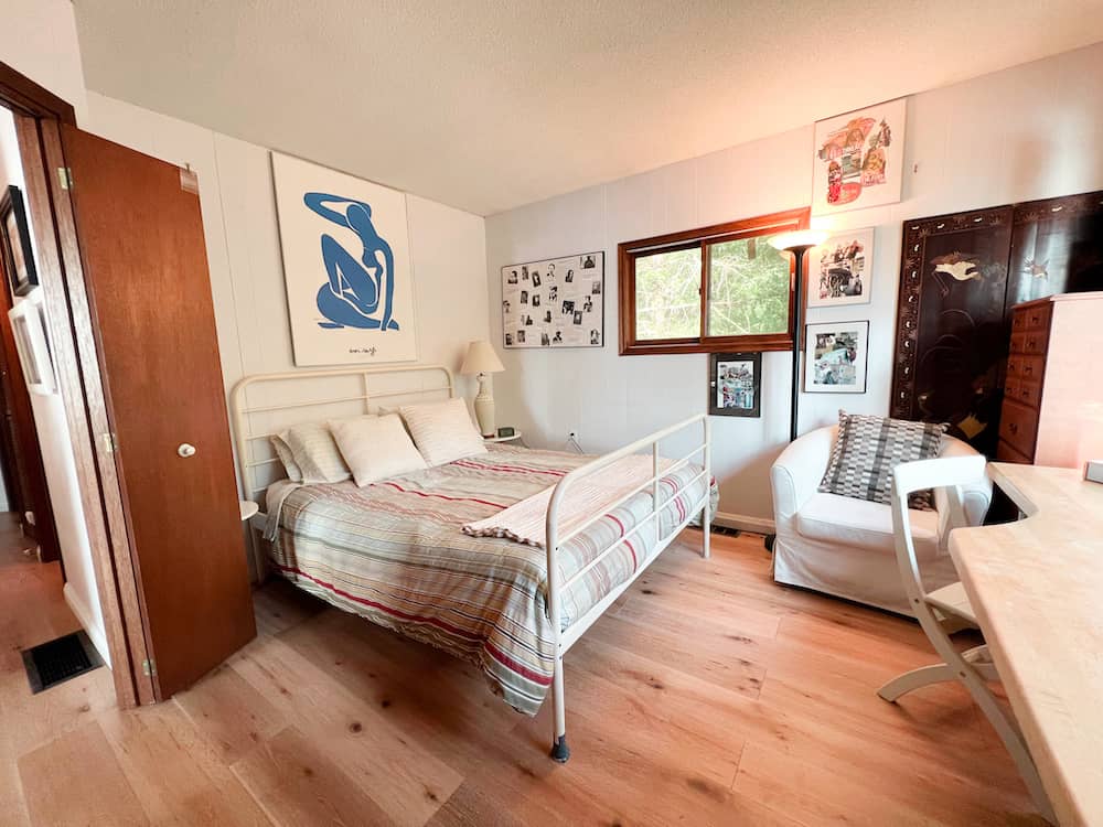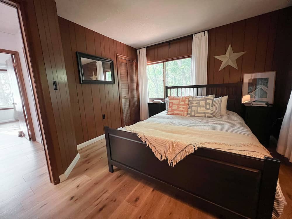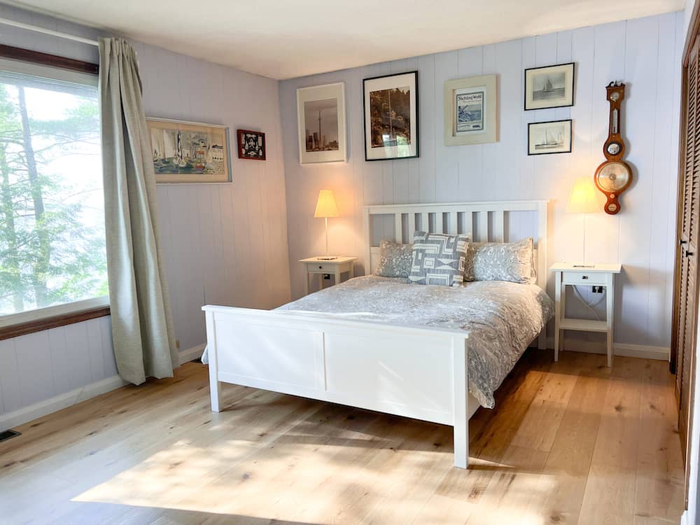 Four bedrooms with queen beds (for four couples or eight people). Upstairs bathroom with bath and shower and downstairs powder room.